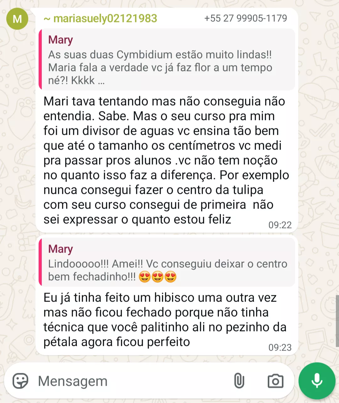 Com a experiência e expertise adquiridas ao longo de mais de uma década, meu maior desejo é me tornar uma precursora em Flores de Açúcar no Brasil. Quero compartilhar todo o conhecimento que acumulei, para que outros confeiteiros possam ter MAIS LUCRO e principalmente, MAIS VIDA.
